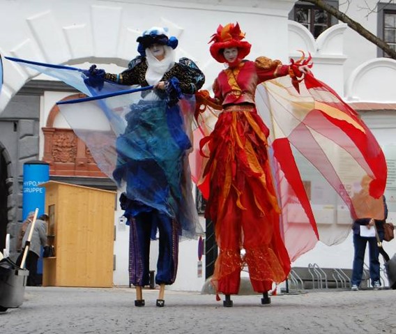Programm: Walking Act auf Stelzen als „Feuer und Wasser“ – Venezianische Stelzengeher.